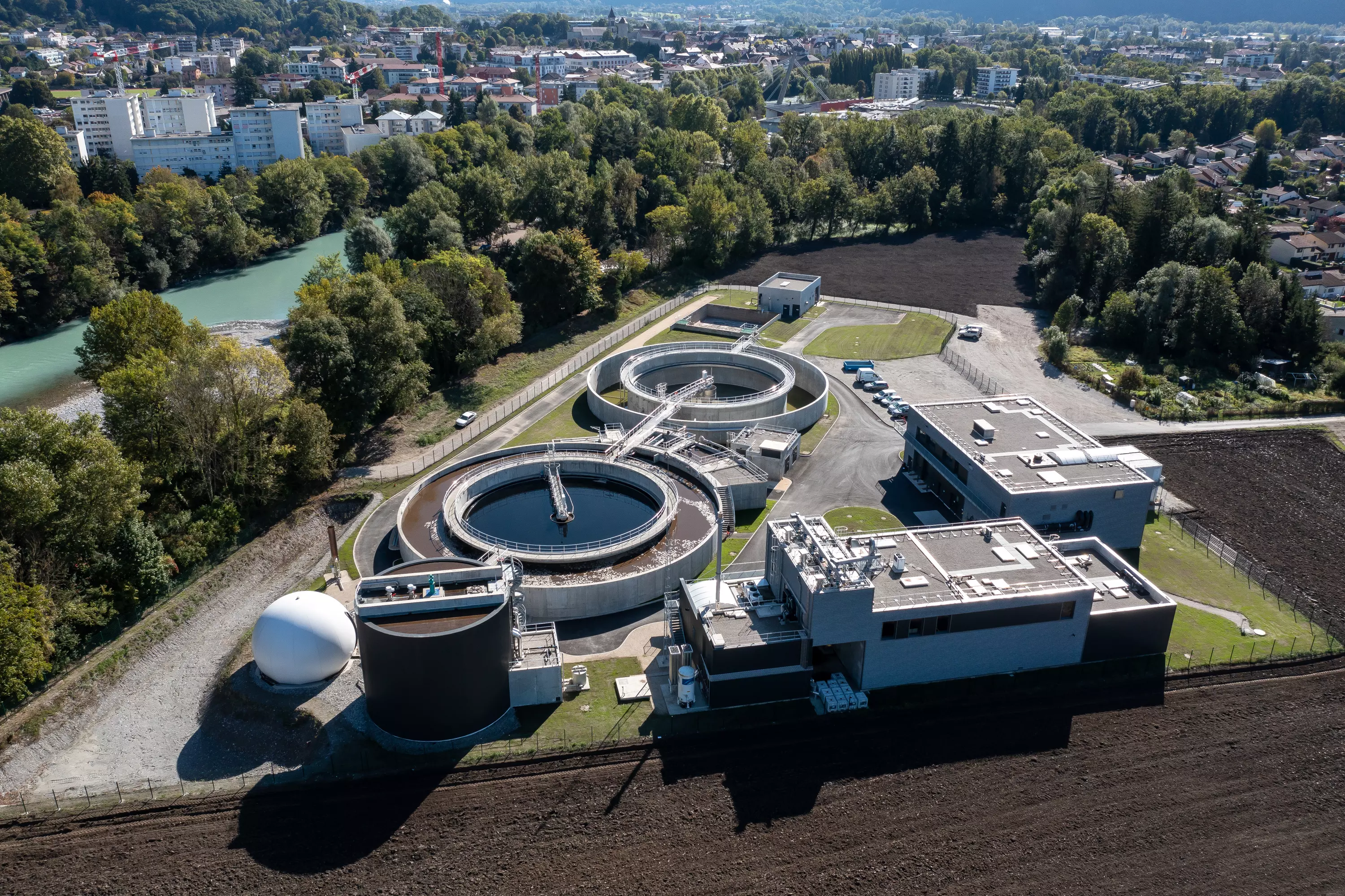 Grâce à cette nouvelle construction, la capacité de traitement a été doublée. Elle permet de traiter 7500 m3/j d’eaux usées avec un traitement poussé de l’azote.